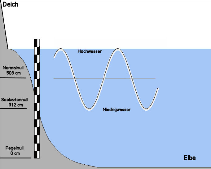 Wenn ihr aber von den angezeigten Zentimetern 503 cm abzieht, wisst ihr, wie hoch das Wasser zu Normall-Null steht.