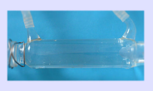 und außerdem entionisiertes Wasser, also frei von Kalk. Außerdem war die Röhre an beiden Seiten mit einem Schliffstopfen